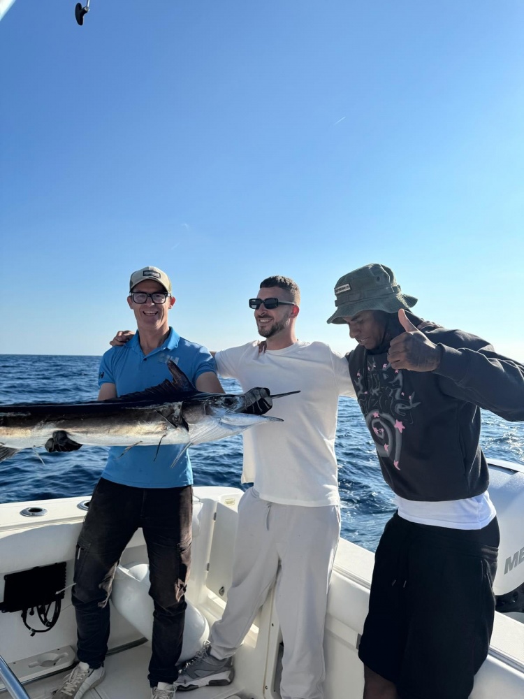 拉什福德社媒晒出海钓的照片,他拿着自己钓上的鱼,露出阳光笑容。