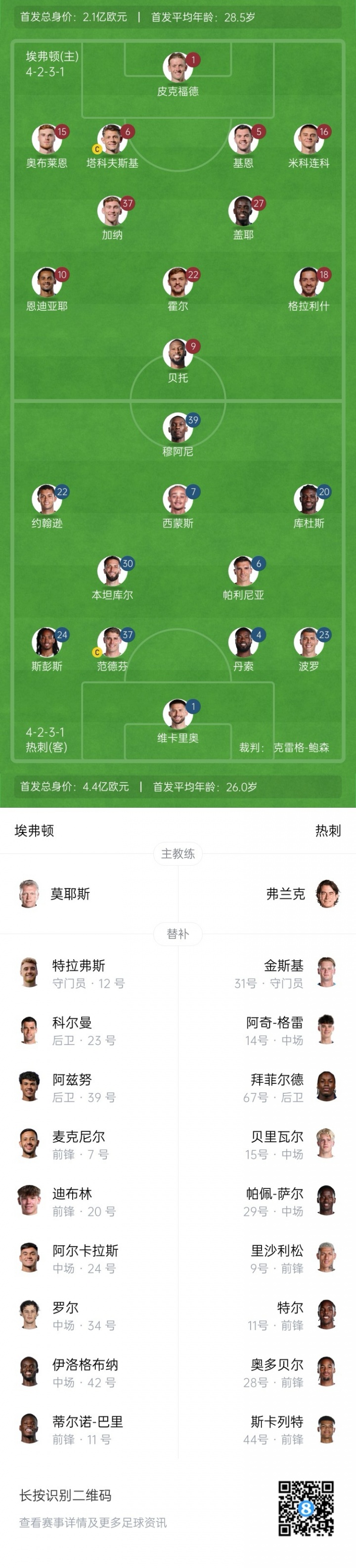 埃弗顿后备 :12-特拉弗斯、23-科尔曼、39-阿兹努、24-阿尔卡拉斯、34-罗尔、42-伊洛格布纳、7-麦克尼尔、11-蒂尔诺-巴里、20-迪布林