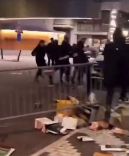 推特上流传的视频显示,身着黑衣的人群冲进某个区域,背景中可见玻璃杯被砸碎。另一段视频中,发布者称:“我和儿子当时正在找酒吧,欧洲杯直播吧走到这家酒吧时感觉气氛焦灼 就没进去,随后就迸发 了冲突,这是我儿子拍摄的视频。”