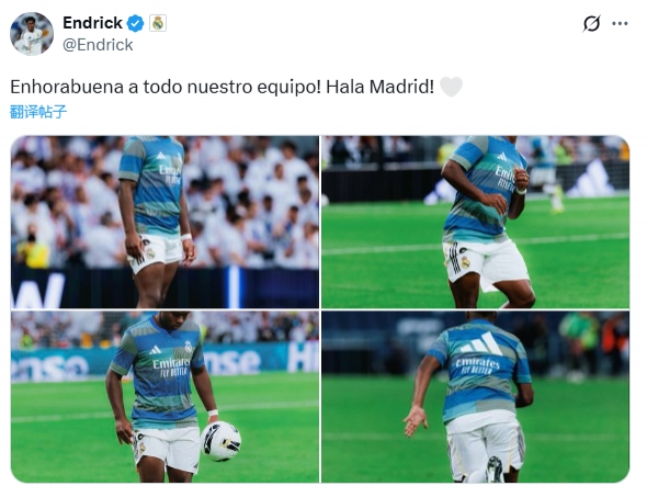 国家德赛事 后,恩德里克写道,“祝贺我们全队!皇马助威 !”措辞礼貌,却透着冰冷疏离,仿佛一个置身事外的旁观者。