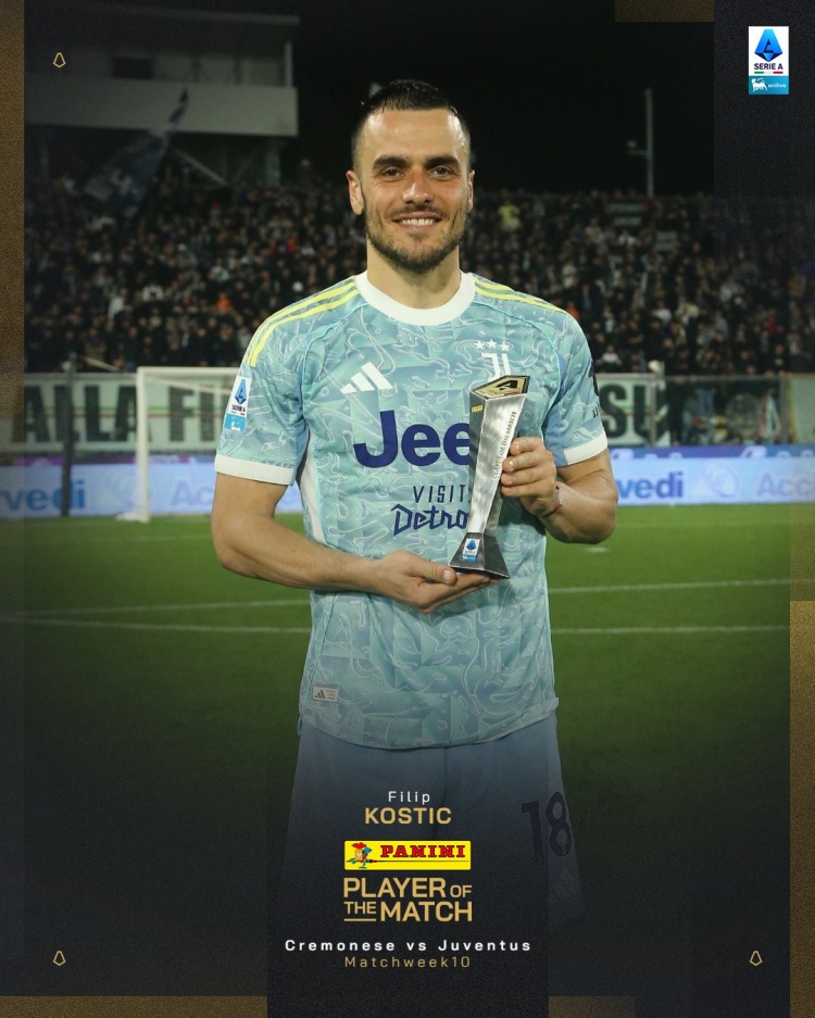 此役科斯蒂奇开场破门,为尤文先拔头筹,欧洲杯直播意甲官方宣布,他当选本场赛事 最佳球员。