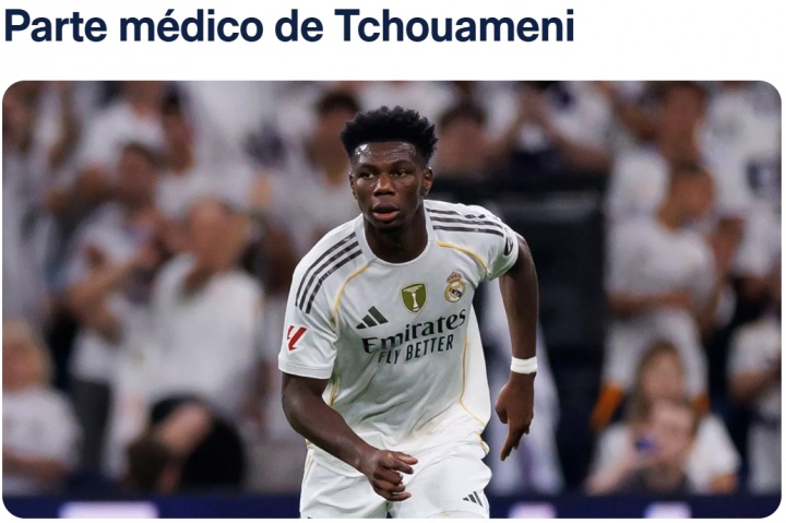 根据皇家马德里俱乐部医疗服务中心今日对我队球员琼阿梅尼的检查结果,其被诊断为左腿半腱肌损伤。伤情进展有待进一步观察。
