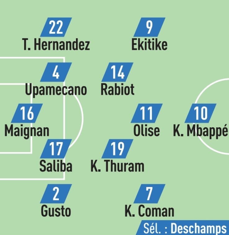 队报预测法国队杆位:迈尼昂;特奥、于帕梅卡诺、萨利巴、古斯托;拉比奥特、K-图拉姆、埃基蒂克、奥利塞、科曼;姆巴佩苏超联赛十三太保报世仇欲望